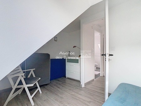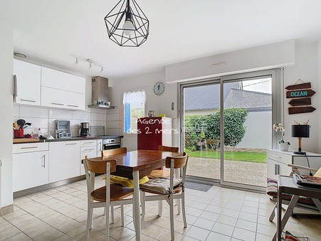 Maison au sein d'une petite copropriété, idéalement située, au calme et à deux pas du centre-ville et de la Grande Plage de Quiberon ... Elle offre au rez-de-chaussée : une entrée avec rangement, pièce de vie avec cuisine aménagée donnant sur agréable terrasse et jardinet clos, petit salon (ou chambre) et salle d'eau A l'étage : palier desservant 2 chambres et salle d'eau avec wc. Appentis attenant pour le rangement et place de parking privative complètent cet adorable pied-à-terre. Bien très prisé, à visiter sans tarder!